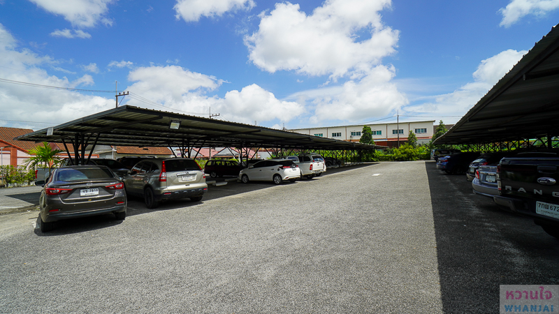 บริเวณที่จอดรถจะมีหลังคาคลุมกันแดด และแบ่งช่องจอดไว้ให้หลายคัน