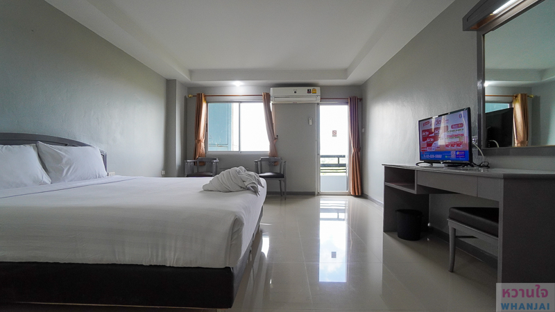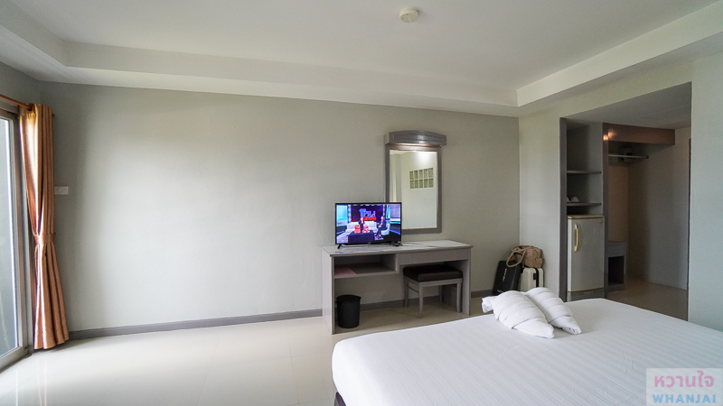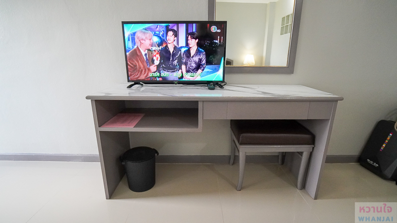 ปลายเตียงจะได้โต๊ะเครื่องแป้ง และทีวีเล็ก ๆ 1 ตัว