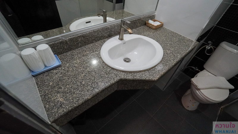 ส่วนแห้งมีอ่างล้างมือ พร้อมของใช้ทั่วไป เช่น สบู่ หมวกคลุมอาบน้ำ สำลี คัตเติ้ลบัต และแก้วน้ำ