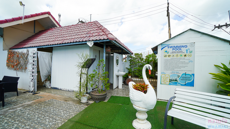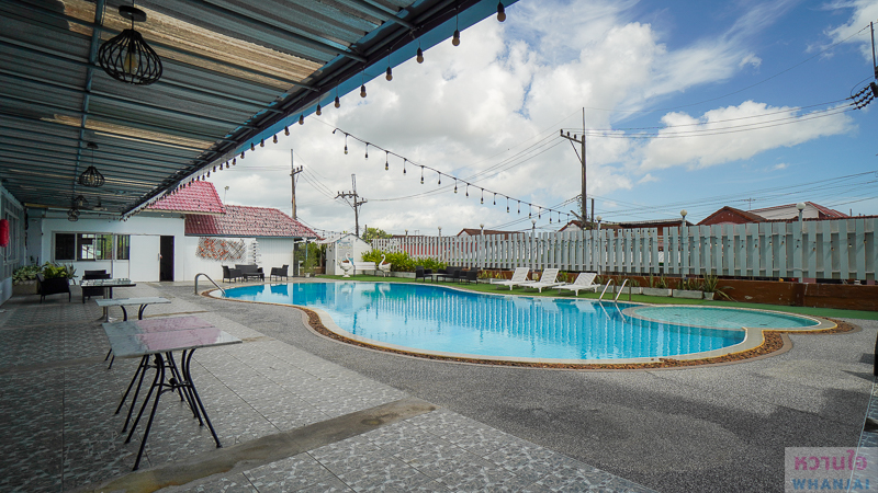 ภายนอกจะเจอกับสระว่ายน้ำฟรีฟอร์มขนาดใหญ่ ลูกค้าสามารถลงมาว่ายออกกำลังกาย แช่ตัวผ่อนคลาย หรือจะพาลูก ๆ หลาน ๆ ลงมาเล่นน้ำ ก็มีสระเด็กแยกไว้ให้