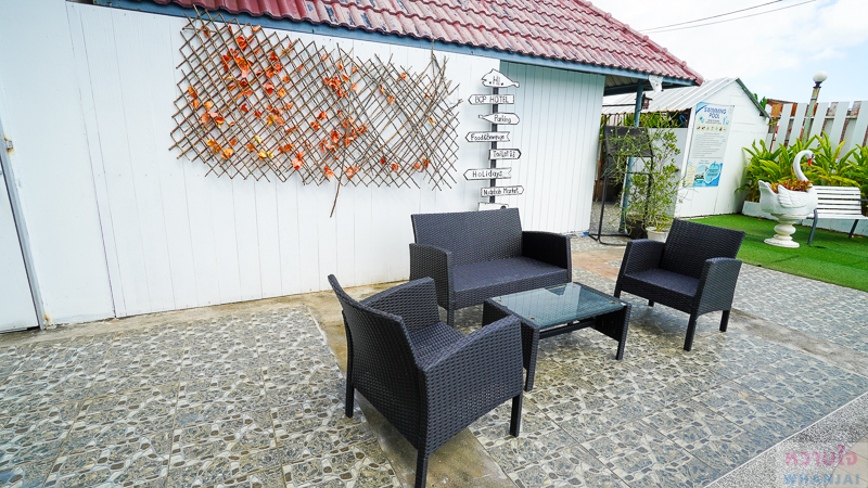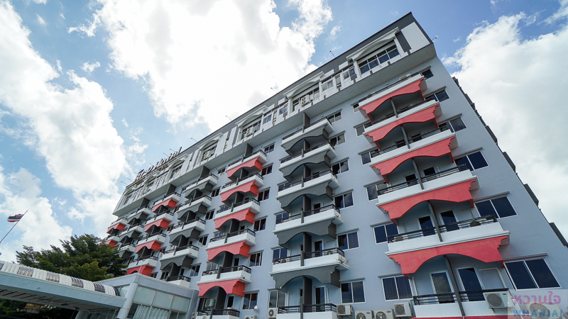 ตรงเข้าไปด้านในโรงแรม จะเจอกับอาคารห้องพักทางด้านซ้าย และขวามือจะเป็นลานจอดรถขนาดใหญ่ ที่รองรับลูกค้ารายวัน รายเดือน รวมถึงลูกค้าที่จัดสัมนากลุ่มใหญ่ได้