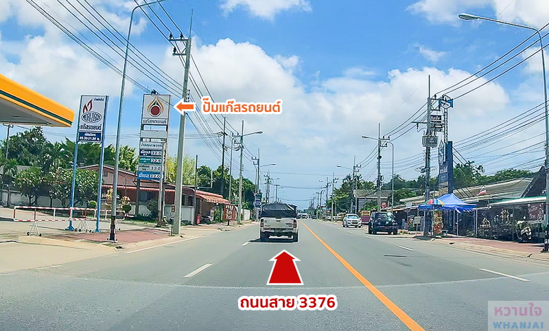 ผ่านปั๊มแก๊สรถยนต์ทางด้านซ้าย